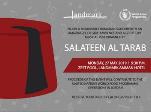 Enjoy a Ramadan Sohour with an amazing pool-side ambiance and a great live musical performance by Salateen Al Tarab. Proceeds of this event will contribute to the United Nations World Food Programme Operations in Jordan. Limited seats available, book your table by calling 079 833 1313.