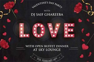 Don't miss our Valentine's Day DJ Party @ Sky Lounge | Millennium Hotel with DJ Saif Ghareeba Ticket : 60 JD including open buffet dinner Sponsors : - Optikos Shami will present 4 Gifts for 4 Winners 2 Sunglasses ( worth 200 JD for each) 2 Gift Vouchers ( worth 100 JD for each ) - Rich & Famous Jewellery will present 1 gift for 1 winner Personalized jewellery ( Gold Necklace ) For more information/ Reservation : Sami Fattah …