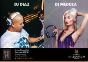 Celebrate Eid at Sky Lounge, where you can dance the night away with the great music and beats of DJ Meduza DJ Diaz! Entry: JD 15 – Including 1 drink Couples and mixed groups only For reservations: 0790212121
