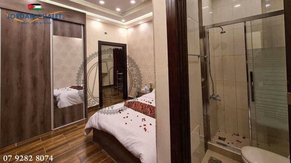 مكون الشاليه من حوض سباحة (5X10) متر بعمق يبدأ من 80 سم الى مترين ( مدفأ ) وشاور خارجي وغرفة جلوس مطل على بركة السباحة ومطبخ امريكي مجهز بالكامل(عدة مطبخ كامله كأنك بالبيت ثلاجه وغاز وفرن ومايكرويف وكولر وغساله ) وغرفتين نوم واحده ماستر جميع مرافق الشاليه الداخلية مكيفة