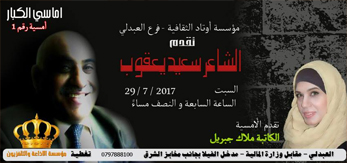 تستضيف مؤسسة أوتاد الثقافية الشاعر سعيد يعقوب و بتغطية من التلفزيون الأردني