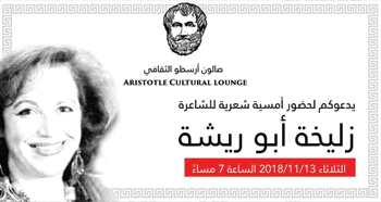 صالون أرسطو الثقافي يستضيف الشاعرة زليخة أبو ريشة بأمسية شعرية