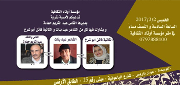 أمسية شعرية نثرية تدعوكم لها مؤسسة أوتاد الثقافية