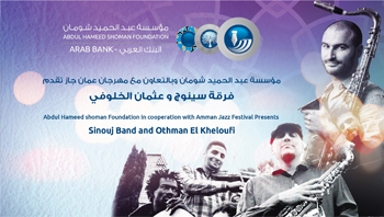 مؤسسة عبد الحميد شومان وبالتعاون مع مهرجان عمان جاز تقدم فرقة سينوج وعثمان الخلوفي في أمسية مع موسيقى الجاز، يوم الخميس 27/4/2017 الساعة 7:30 مساءً في مقر مؤسسة عبد الحميد شومان- جبل عمان.
