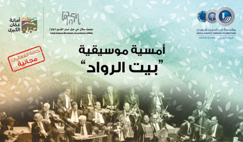 ضمن فعاليات أيام مؤسسة عبد الحميد شومان الثقافية في جبل عمّان السادس، نقدم لكم أمسية موسيقية مع فرقة بيت الرواد، يوم السبت 21 أيلول 2019 الساعة 7:30 مساءً، وذلك في شارع جارا.