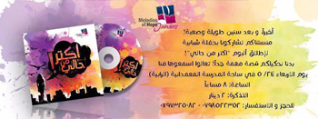أخيراً، و بعد سنين طويلة و صعبة! منستناكم تشاركونا بحفلة شبابية لإطلاق ألبوم “اكتر من حالي”! بدنا نحكيلكم قصة مهمة جداً! تعالوا اسمعوها منا