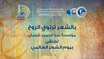 وباعتبارها مكانا ينحاز إلى الجمال والحياة والإبداع، تحتفل مؤسسة عبد الحميد شومان بيوم الشعر العالمي من خلال نخبة من الشعراء الذين ينشدون للحياة والسعادة والأمل بغدٍ أفضل.