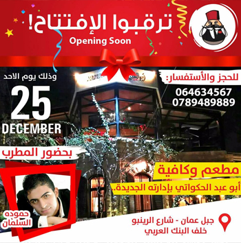 افتتاح مطعم و كافيه أبو عبد الحكواتي بادارته الجديدة