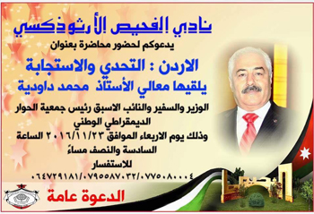 الأردن: التحدي و الاستجابة يلقيها معالي الأستاذ محمد داودية @ نادي الفحيص الأرثذوكسي