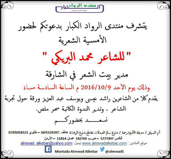 يتشرف منتدى الرواد الكبار بدعوتكم لحضور