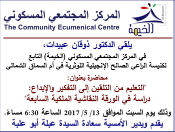 في المركز المجتمعي المسكوني – الخيمة – التابع لكنيسة الراعي الصالح الإنجيلية اللوثرية في أم السماق الشمالي