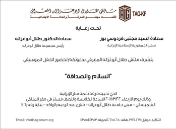 يتشرف ملتقى طلال أبو غزالة المعرفي بدعوتكم لحضور الحفل الموسيقي