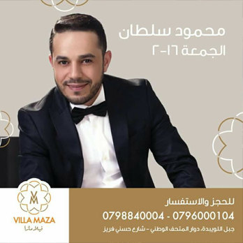 سهرة طرب مع الفنان محمود سلطان في مطعم Villa Maza -جبل اللويبدة دوار المتحف الوطني للحجز والاستفسار الرجاء الاتصال على الرقم