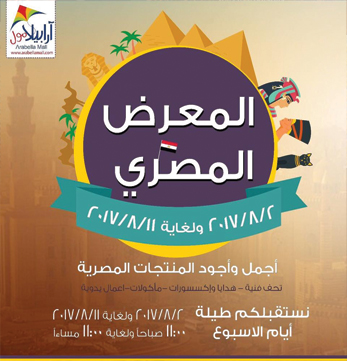 برحب بكم في المعرض المصري في محافظو اربد، ارابيلا مول، وذلك اعتبارا من يوم الاربعاء ٨/٢ وحتى ٨/١١، من الساعه ١١ صباحا الى ١١ مساء ، اهلا وسهلا بالجميع