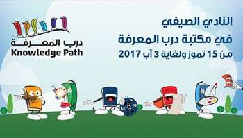 تُعلن مكتبة درب المعرفة للأطفال واليافعين في مؤسسة عبد الحميد شومان، عن فتح باب التسجيل في فعاليات النادي الصيفي، حيث يمكن للمشتركين من الأطفال واليافعين من أعمار ثلاث سنوات وحتى ستة عشر عاماً الاشتراك مجاناً بنشاطين بحد أقصى ولمدة يومين في الأسبوع خلال الفترة- 15 تموز 2017 وحتى 3 آب 2017. للتسجيل في النادي على أهالي الرواد الحضور إلى المكتبة يوم الخميس 6/7/2017 من الساعة 3 عصراً حتى 6 مساءً.