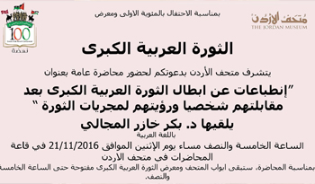 بمناسبة المحاضرة, ستبقى ابواب المتحف و معرض الثورة العربية الكبرى مفتوحة حتى الساعة الخامسة و النصف