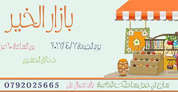 للراغبين بالمشاركة في البازار وحجز طاولة لعرض منتجاتهم وأشغالهم اليدوية أو صفحاتهم التواصل معنا عبر الرقم 0792025665 أو عبر رسالة لباب الخير للعمل التطوعي