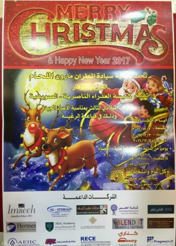 ندعوكم لحضور افتتاح بازار كنيسة العذراء الناصرية يوم الجمعه الموافق ٢/١٢/٢٠١٦ من الساعة العاشرة حتى الساعة التاسعة مساءً و حتى يوم الأحد.