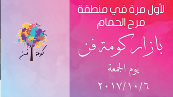 لأول مرة في مرج الحمام سيقام بازار كومة فن الابداعي باذن الله يوم الجمعة الموافق ٦/١٠/٢٠١٧ . سيتم افتتاح بازار كومة فن تحت رعاية سعادة الدكتور مخلد صبحي المناصير .