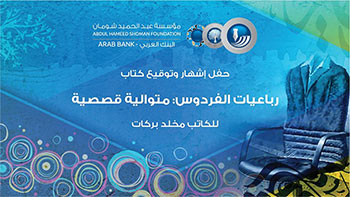 ضمن فعاليات أسبوع جبل عمان الثقافي 4 تقدم لكم مكتبة عبد الحميد شومان، حفل إشهار وتوقيع كتاب “رباعيات الفردوس” للكاتب مخلد بركات، يوم الأربعاء 10/5/2017 الساعة 6:30 مساءً في مكتبة مؤسسة عبد الحميد شومان / الطابق الأول