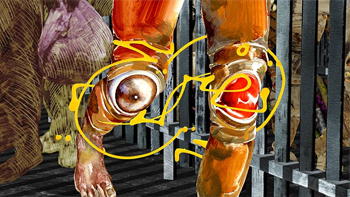 Mirroring and complementing the diversity of artistic techniques used by Badran (acrylic paint on paper, collage, ink drawing, pencil drawing, manual interventions on photography, and various animation techniques), sound and language play an important role in the film’s narrative. It is used poetically as a tool for dialogue and reflection on the one hand, while the checkpoint military orders are represented by an invented language expressing aggressive sounds of violence.