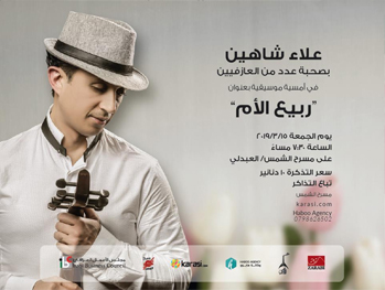 أعزائي، بانتظاركم في أمسية موسيقية بعنوان “ربيع الأم”، الجمعة الموافق ٢٠١٩/٣/١٥، على مسرح الشمس الساعة ٧:٣٠ مساءً.