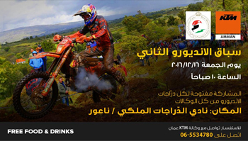 سوف يقام سباق الانديورو في نادي الدراجات الملكي، الساعة 10 صباحاً، الدعوة مجاناً لجميع درّاجين الانديورو من كل الوكالات!