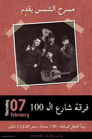 حفل موسيقي لفرقة شارع ال 100 , و هي فرقة تقدم الأغاني الطربية القديمة و الحديثة و دمج ما بينهم بطريقة رائعة .
