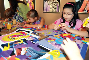 ط1 : الرسم مع الرمل الملون..وهو توزيع رسومات جاهزة ع الاطفال متل وردة او سيارة ومن ثم يقوم الاطفال بتعبئة الرسمة بالغرا او الجلو ورشها بالرمل الملون.