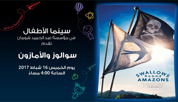 سينما الأطفال واليافعين في مكتبة درب المعرفة – مؤسسة عبد الحميد شومان تُقدم فيلم “سوالوز والأمازون”. يوم الخميس الموافق 16/2/2017 الساعة 4 مساءً.