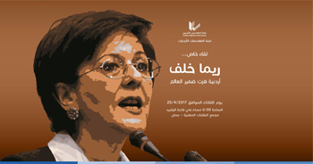بتنظيم من لجنة المهندسات الأردنيات تدعوكم نقابة المهندسين الأردنيين للمشاركة في لقاء خاص مع الدكتور ريما خلف والتي استقالت من منصب الأمينة التنفيذية للجنة الأمم المتحدة الاقتصادية والاجتماعية لغرب آسيا (إسكوا) على خلفية سحب تقرير دولي يتهم الكيان الصهيوني بممارسة اضطهاد للشعب الفلسطيني.