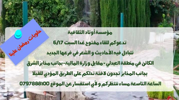 تدعوكم للقاء مفتوح غدا السبت 17/6 نتبادل فيه الأحاديث و الشعر في فرعها الجديد الكائن في منطقة العبدلي – مقابل وزارة المالية- بجانب مخابز الشرق
