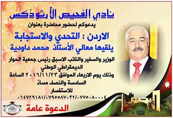 محاضرة “الاردن: التحدي والاستجابة” @ نادي الفحيص الارثوذكسي
