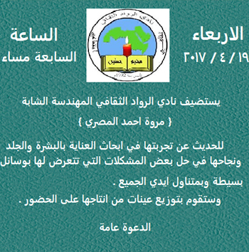 وذلك يوم الاربعاء الموافق 19 / 4 / 2017 الساعة السابعة مساءً