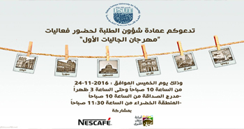تدعوكم عمادة شؤون الطلبة لحضور فعاليات مهرجان الجاليات الأول