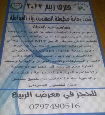 للمشاركة في معرض الربيع 2017 الخيري و الذي يقام في نادي ابو نصير الرياضي