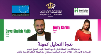 يسرّ الهيئة الملكية الأردنية للأفلام بالتعاون مع مسابقة مينتور العربية للأفلام التوعوية القصيرة للشباب دعوتكم لحضور ندوة بعنوان “التمثيل كمهنة” يقدمانها كل من الممثلة نيللي كريم والممثل قيس الشيخ نجيب.