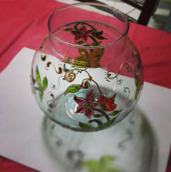 من ارقى الفنون الرسم على الزجاج تعالوا نتعلم اساسيات الرسم على الزجاج ونعمل لوحة مميزة تعليقها ببيتك يوم الاربعاء ٣٠-١١من الساعه ٩:٣٠-١٢:٣٠