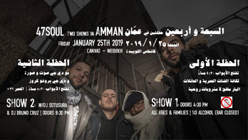 Show #1: 47Soul, Doors at 4:30pm , Showtime 5 pm- 7pm , All Ages & Families , No Alcohol ( Bar Closed) , Venue Will Close Right After The Show , Tickets : 10 JOD Includes Soft Drink
