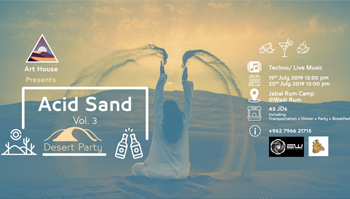 After two editions of Acid Sand – a musical adventure in Wadi Rum , dance , laugh , and shooting stars in the magical desert of Wadi Rum!