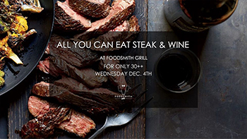 Nothing beats good steak and a glass of wine! Join us this Wednesday, December 4th for as much steak and wine your body can handle!