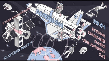 Ambush is celebrating a year of creating movement, motion & madness. Join us in celebrating the end of this era, we are going to close our doors for a few months and we will kick off again in a bigger & better home. We can’t believe it’s been a year since we first took shelter into this downtown rooftop. A year of non-stop local, regional and international music. A year of a dancefloor that has turned into a community, Join us as we say good bye to this venue and to celebrate our next step that is coming soon.
