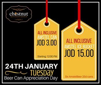 Amstel Beer Can for JOD 3.00, all inclusive.