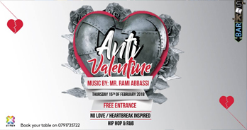 Calling all movers, shakers and heartbreakers! Valentine’s day is over, good enough excuse to partaay! You don’t necessarily have to be in a relationship to have fun this Valentines! While all those love birds are out there celebrating, we’ve got you people covered! We are going to party the night away to the craziest no love / heartbreak inspired music by Rami W. Abbassi on Thursday the 15th of February.