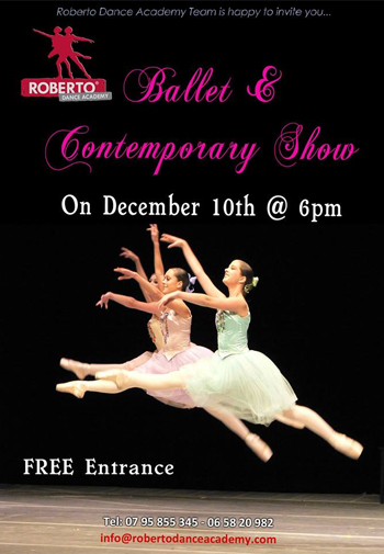 Roberto Dance Academy is happy to invite you for Our Ballet and Contemporary Show on December 10th at 6pm.