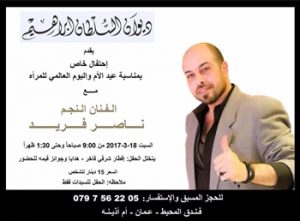 Mother's day Party: Najm Al-Salman @ Crown Plaza Hotel - Amman Saturday, March 18, 2017 - at 10 AM كل عام وانتي بخير حفلة بمناسبة عيد الام في فندق كراون بلازا يوم السبت ٣/١٨ الساعة ١٠ صباحا مع الفنان نجم …
