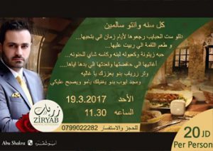 سهرة العشاء مع صوت النجم امير صلاح يوم الاحد 16/4/2017 للحجز والاستفسار الإتصال على الرقم 0798750096