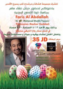 تتشرف مجموعة كشافة و مرشدات قلب يسوع الأقدس بدعوتكم لحضور حفل عشاء ساهر بمناسبة عيد الفصح المجيد Faris Al Abdallah DJ Mohanad Sheikh Yaseen Percussion Bashar Haddad و ذلك يوم الأحد 16/4/2016 الساعة 8:30 مساءً في فندق ستار بلازا (تايكي) …