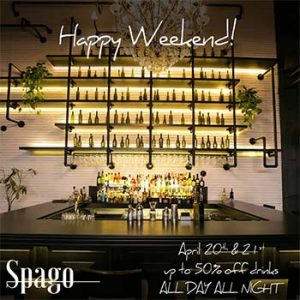 50% Off weekend @ Spago Restaurant & Bar On Thursday April 20th and Friday April 21st, 2017 ONLY this weekend, enjoy up to 50% off drinks ALL Day ALL