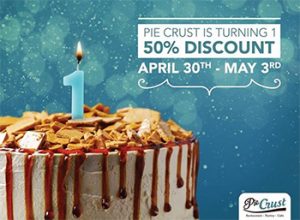 50% Off @ Pie Crust Offer valid till May 3rd, 2017 In celebration of our 1 year Anniversary and from April 30th to May 3rd get a 50% discount off the total bill at Pie Crust when you order anything …